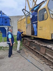 Безпосередньо на прикладі автокрану державний інспектор провів зразкову демонстрацію методики виконання перевірки приладів та пристроїв безпеки, а також основних вузлів та механізмів автокрану.